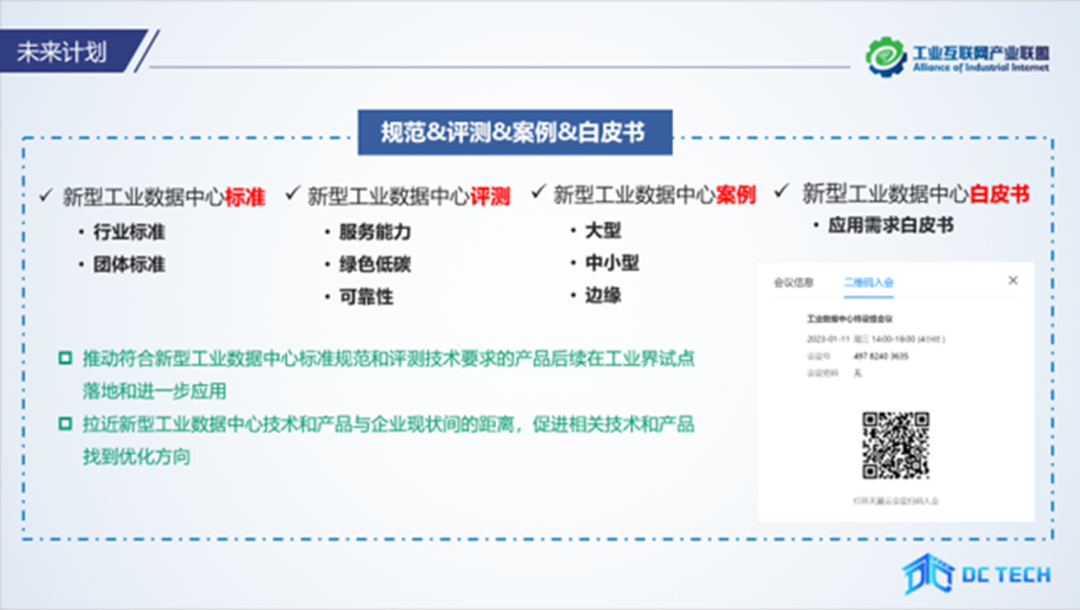 下一步,工業數據中心特設組將繼續加強產業交流,持續推動新型工業數據中心行業和團體標準研制,加快完善服務能力、綠色低碳、安全可靠評測體系,持續征集優秀新型工業數據中心案例,聯合產業界各方編寫白皮書,切實推動新型工業數據中心高質量發展。