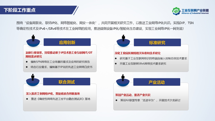 下一步,IPv6+特設組將圍繞“設備網聯化、聯結IP化、網絡智能化、網安一體化”,共同開展相關研究工作,以推進工業網絡IP化共識,實踐DIP、TSN等確定性技術及IPv6+/SRv6等技術在工業網絡的應用,推進端側設備IP化/智能化生態建設,實現數據上得來,智能下得去,助力制造業數字化和智能化轉型升級!