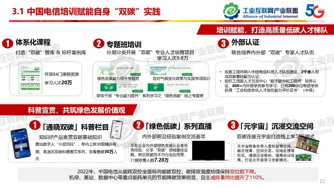 本期為您帶來由工業(yè)互聯(lián)網(wǎng)產(chǎn)業(yè)聯(lián)盟碳達峰碳中和組副主席、中國電信工業(yè)事業(yè)部總裁助理仲肇中分享的《高質量雙碳實踐,培訓賦能》。工業(yè)雙碳要貫徹“立足我國能源資源稟賦,堅持先立后破,有計劃分步驟實施碳達峰行動。”,深刻理解“實現(xiàn)碳達峰碳中和是一場廣泛而深刻的經(jīng)濟社會系統(tǒng)性變革”。政府官員、企業(yè)各級人員、雙碳服務提供商都應參加“雙碳”系統(tǒng)培訓。“雙碳”培訓機構在做好培訓的基礎上,要努力成為“雙碳”實踐經(jīng)驗分享平臺、實踐模式探索平臺、供需對接的交流平臺、新技術、研發(fā)成果轉化平臺、雙碳各領域交叉融合創(chuàng)新平臺。