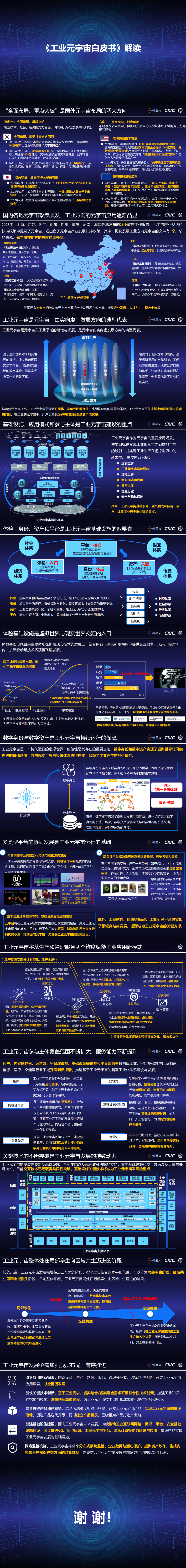 工業元宇宙概念較為前沿,涉及的技術復雜,產業類型多,工業元宇宙的產業生態體系尚未完善,但圍繞工業元宇宙的應用探索正在逐步展開,國內外都在加強相關布局。為了凝聚共識,引導業界協同開展工業元宇宙探索,本報告對工業元宇宙的概念內涵、可能引發的變革、概念框架、支撐體系進行了闡述,并給出了推進建議,希望為工業元宇宙的落地應用和產業發展提供參考。