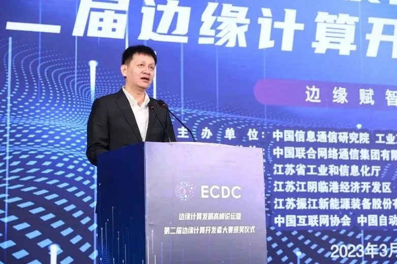 2023年3月23日,由中國信息通信研究院(簡稱“中國信通院”)、工業互聯網產業聯盟(簡稱“AII”)、邊緣計算產業聯盟(簡稱“ECC”)共同主辦,江蘇省工業和信息化廳指導,江蘇江陰臨港經濟開發區、南京理工大學、中國聯合網絡通信有限公司江蘇省分公司、江蘇振江新能源裝備股份有限公司等共同承辦的邊緣計算發展高峰論壇暨第二屆邊緣計算開發者大賽頒獎儀式在江蘇省江陰市舉行。工業和信息化部信息通信管理局業務資源處處長趙陽,中國信通院總工程師敖立,江蘇省工業和信息化廳二級巡視員常如平,無錫市委常委、江陰市委書記許峰等領導出席活動并致辭。中國信通院技術與標準研究所副所長湯立波主持本次活動。