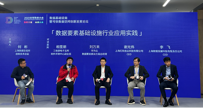 在“數據要素基礎設施行業應用實踐”圓桌對話中,上海數據交易所創新技術總監何彬、工信部電子五所軟件評測中心副主任相里朋、華為云數據要素解決方案總經理劉萬來、上海紅陣信息科技有限公司CEO謝光偉、上海數據發展科技有限責任公司CEO李飛等嘉賓參與研討,嘉賓們從不同角度分享如何利用各自優勢技術來構建現代化的數據要素基礎設施。