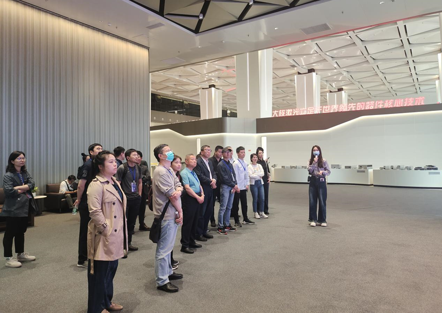 聯(lián)盟一行首先參觀了大族激光展廳,講解員介紹了公司的發(fā)展歷程,展示了大族激光器、激光打標(biāo)、激光焊接、激光切割、激光鉆孔等設(shè)備的實(shí)際使用流程。專家們與講解員、大族相關(guān)人員進(jìn)行了熱烈交流與討論。大族激光致力于智能制造裝備及其關(guān)鍵器件的研發(fā)、生產(chǎn)和銷售,具備從基礎(chǔ)器件、整機(jī)設(shè)備到工藝解決方案的垂直一體化能力,是全球領(lǐng)先的智能制造裝備整體解決方案服務(wù)商。