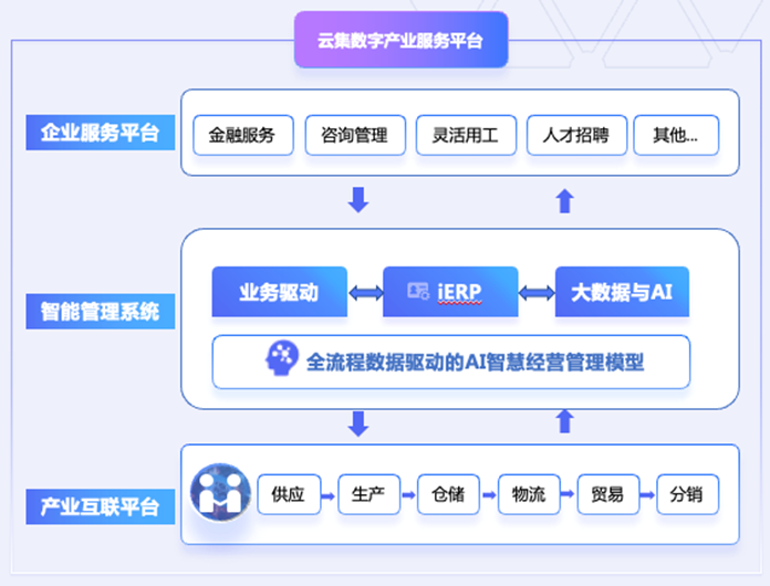 此外,中小制造業在上游供應商拓展和下游客戶開發中由于信息不對稱導致效率低下。云集為客戶建立了上下游互聯互通的產業互聯平臺,該平臺使得制造企業能夠實時掌握上游供應鏈信息,包括供應商資源、原材料成本、質量與交付能力等關鍵信息,從而更有效地進行成本控制和采購管理。同時,這也為上游供應商帶來了更全面的市場信息和業務機會,幫助該平臺加速匯集更多更優質的供應商資源與企業業務需求。該平臺與iERP系統全面打通,形成業務閉環和數據閉環,從而為企業的內外部經營管理提供更加全面的決策輔助。