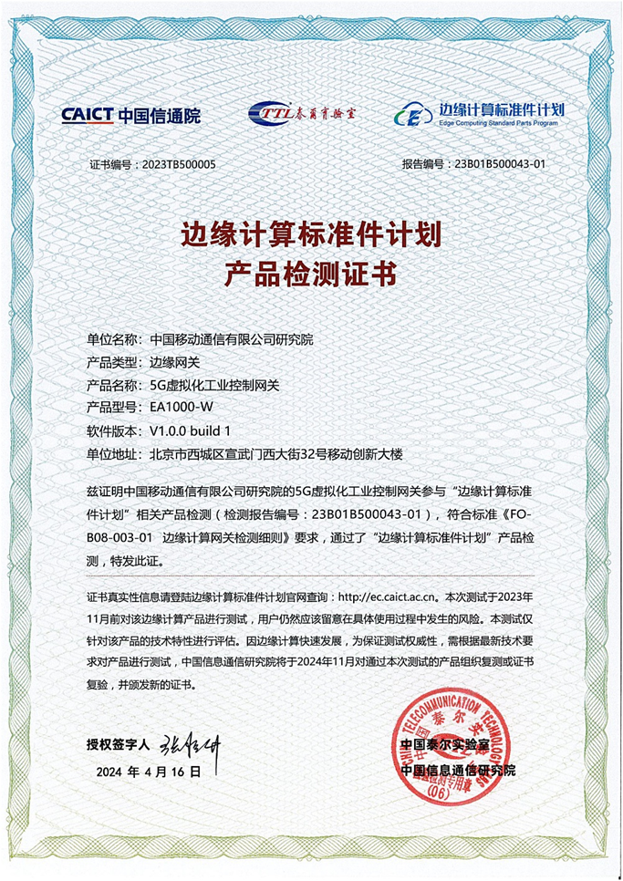 中國移動研究院自主研發(fā)的5G虛擬化工業(yè)控制網(wǎng)關(guān)順利通過本次“邊緣計算標準件計劃”產(chǎn)品測試,并且在多個領(lǐng)域?qū)嶋H應(yīng)用部署和持續(xù)穩(wěn)定運行,助力各行業(yè)企業(yè)應(yīng)用升級,推動數(shù)字化建設(shè)落地。