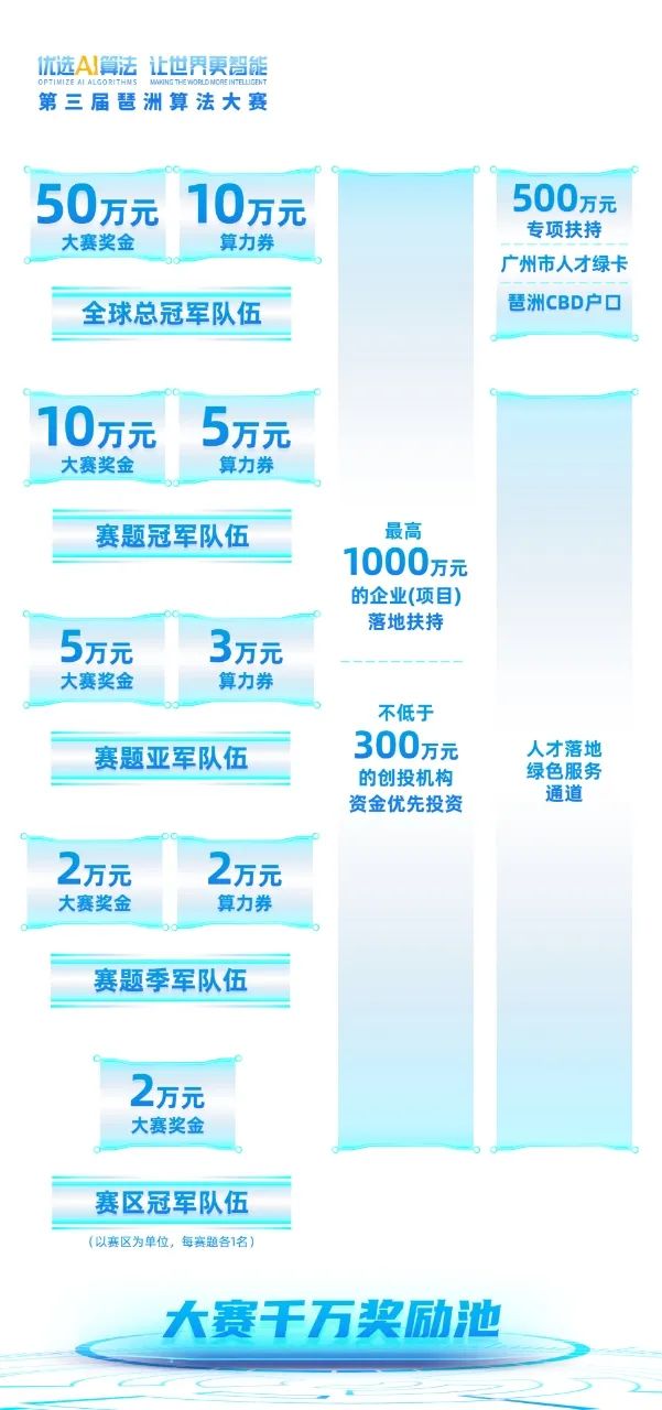 第三屆琶洲算法大賽(以下簡稱“大賽”)于2024年4月23日正式報名開賽!大賽面向全球,誠邀在算法領(lǐng)域,有創(chuàng)新精神的高等院校、科研機構(gòu)、企業(yè)開發(fā)者團體或個人等報名參賽!