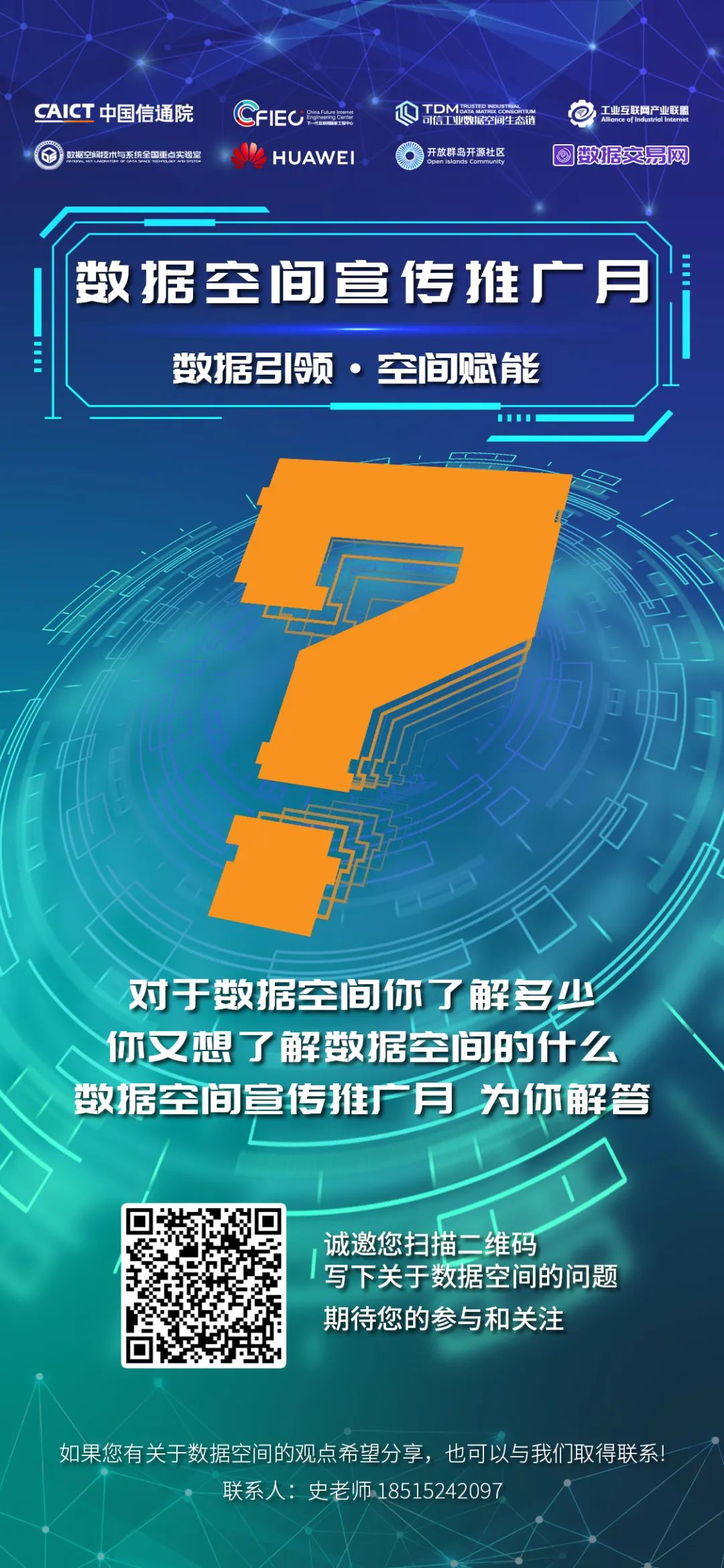 更重要的是!在接下來9-10月的時間里,中國信息通信研究院、下一代互聯網國家工程中心、數據空間技術與系統全國重點實驗室、華為技術有限公司、可信工業數據空間生態鏈、工業互聯網產業聯盟、開放群島開源社區、數據交易網將攜手為各位帶來數據空間宣傳推廣月活動!我們將邀請重磅嘉賓,針對大家的問題,使用線上直播的方式進行解答,歡迎持續關注活動信息,不要錯過任何精彩內容!