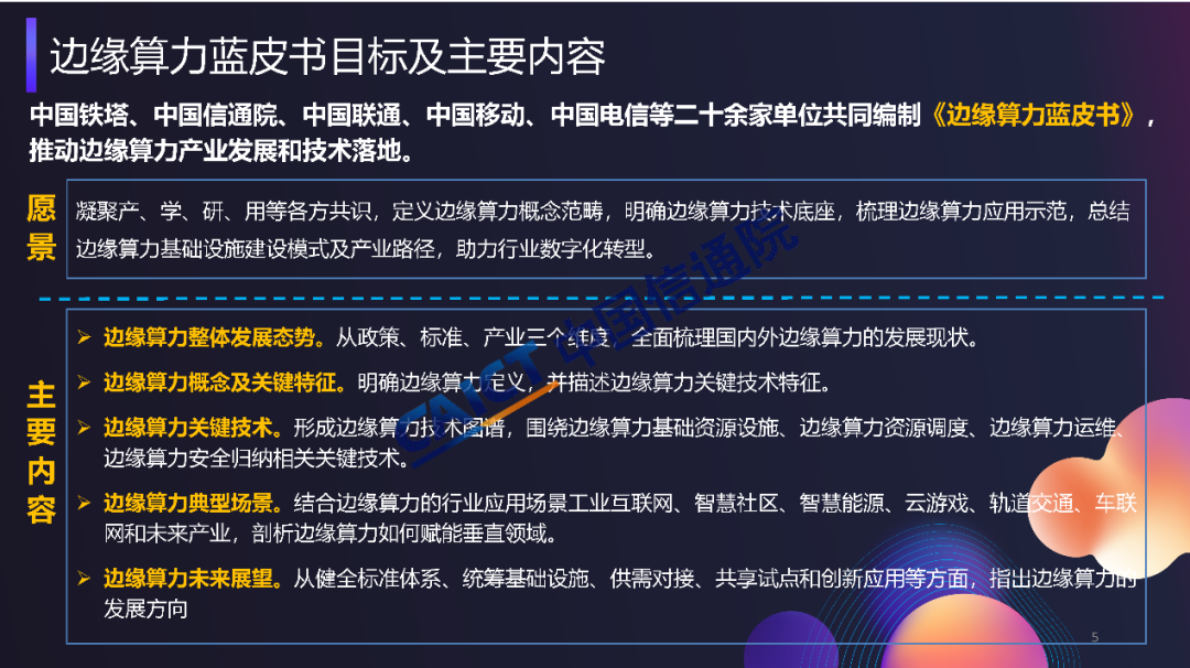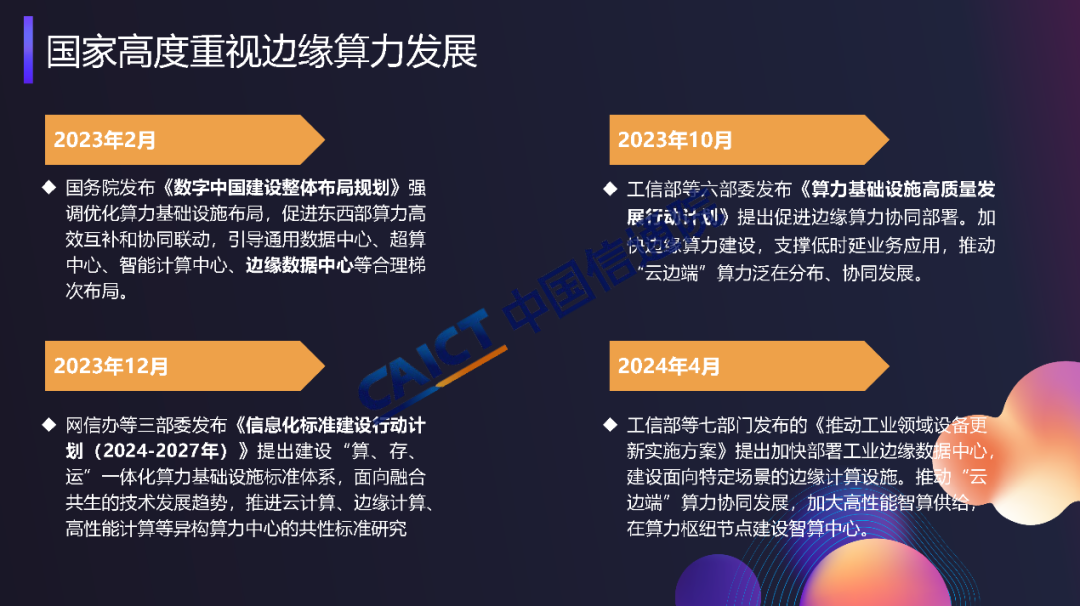 工信部等六部委聯(lián)合發(fā)布《算力基礎(chǔ)設(shè)施高質(zhì)量發(fā)展行動計劃》,明確提出促進邊緣算力協(xié)同部署,加快邊緣算力建設(shè),支撐工業(yè)制造、金融交易、智能電網(wǎng)、云游戲等低時延業(yè)務(wù)應(yīng)用,推動“云邊端”算力泛在分布、協(xié)同發(fā)展。中國鐵塔、中國信通院、中國聯(lián)通、中國移動等單位共同啟動邊緣算力研究項目,并形成了《邊緣算力藍(lán)皮書》,也期待與行業(yè)內(nèi)合作伙伴共同合作,持續(xù)推動邊緣算力技術(shù)體系構(gòu)建及產(chǎn)業(yè)生態(tài)發(fā)展。