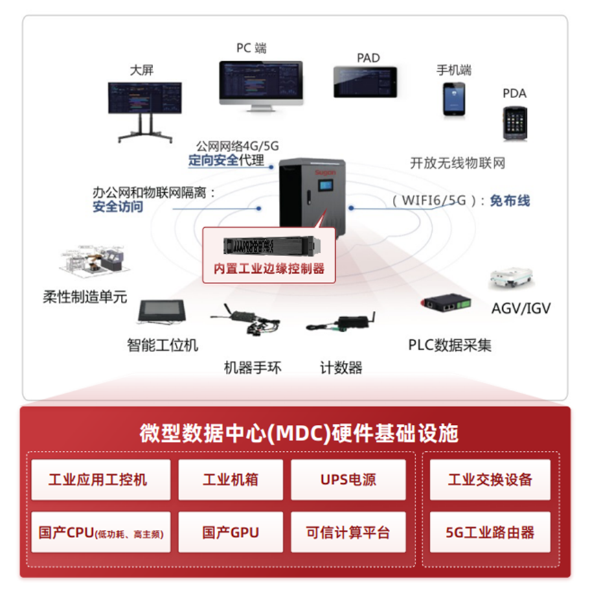 為加快賦能中小企業(yè)“智改數(shù)轉”,曙光網(wǎng)絡基于GWR-3230H工業(yè)邊緣控制器,打造曙光工業(yè)智能一體機解決方案,將工業(yè)邊緣控制器、工業(yè)交換機/路由器、觸摸大屏、UPS電源、各類傳感器等硬件,以及MES、SCADA、PLM等工業(yè)軟件全部集成在一個工業(yè)機柜當中,用工業(yè)安全邊緣云構建本地化智能制造平臺。