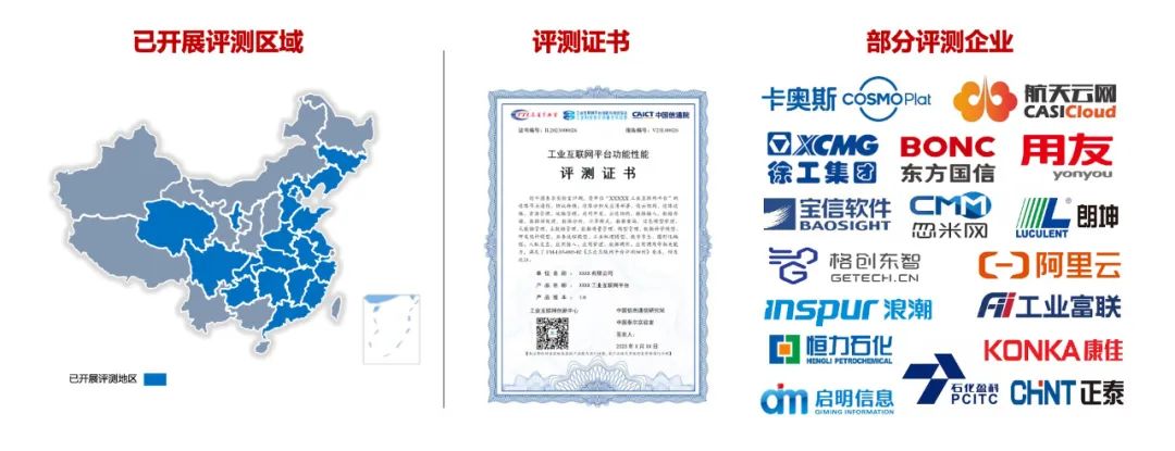 2018年至今,中國(guó)信息通信研究院信息化與工業(yè)化融合研究所工業(yè)互聯(lián)網(wǎng)測(cè)試中心累計(jì)在全國(guó)范圍內(nèi)評(píng)測(cè)20個(gè)省市近400余家工業(yè)互聯(lián)網(wǎng)平臺(tái)及千余款工業(yè)APP,涵蓋跨行業(yè)跨領(lǐng)域、特定行業(yè)/區(qū)域、特定專業(yè)技術(shù)等各類型平臺(tái),設(shè)備管控、研發(fā)仿真、經(jīng)營(yíng)管理等各類工業(yè)軟件。測(cè)評(píng)結(jié)果在促進(jìn)平臺(tái)架構(gòu)設(shè)計(jì)、應(yīng)用開發(fā)、模式創(chuàng)新、產(chǎn)品服務(wù)等迭代升級(jí)的同時(shí),也為江蘇、安徽、廣東、貴州、四川、遼寧、浙江、北京等地提供有力政策支撐,推進(jìn)工業(yè)互聯(lián)網(wǎng)高質(zhì)量發(fā)展。
