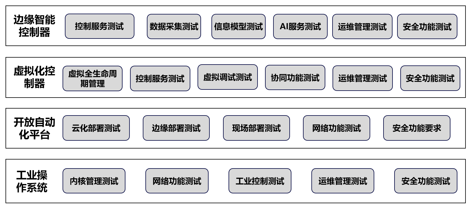 新型工業控制產品測試對象包括邊緣智能控制器、虛擬化控制器、開放自動化平臺、工業操作系統智能數采與監視系統