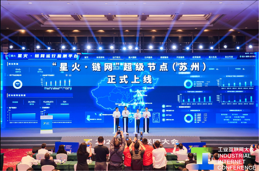在2025工業(yè)互聯(lián)網大會開幕式上,“星火·鏈網”超級節(jié)點(蘇州)正式上線。江蘇省工業(yè)和信息化廳黨組書記、廳長朱愛勛,江蘇省通信管理局黨組書記、局長許繼金,蘇州市政協(xié)副主席、吳中區(qū)委書記丁立新,中國信息通信研究院院長余曉暉參與上線儀式。