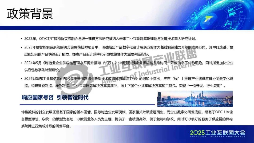 5月22日,在2025工業互聯網大會“新型工業控制與智能互操作發展專題活動”上,北京坤盈數科智能科技有限公司總經理張譽發表了《企業數字化研發底座》的主題演講。