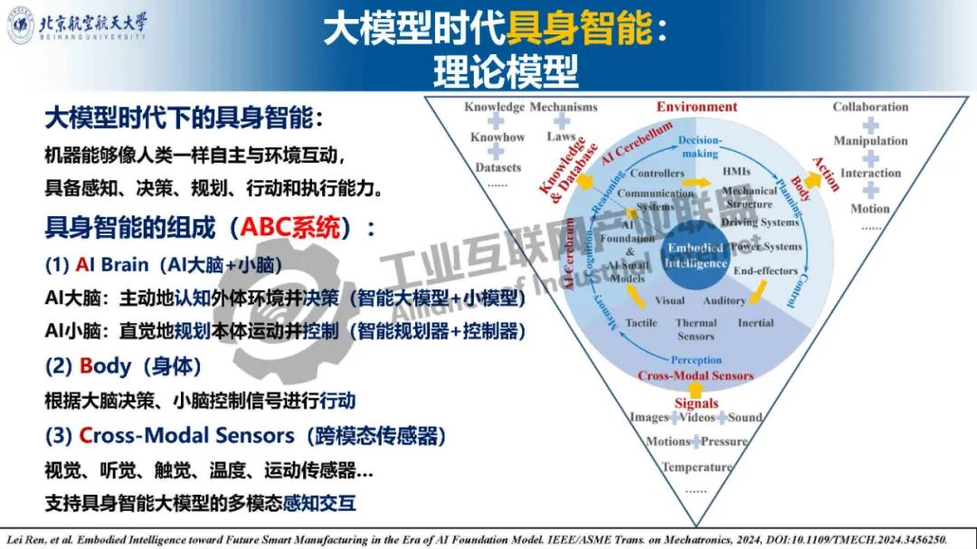 在新一代人工智能浪潮下,工業(yè)互聯(lián)網(wǎng)正邁向人工智能3.0時代。工業(yè)大模型將有望成為工業(yè)互聯(lián)網(wǎng)的中樞大腦,工業(yè)具身智能將為工業(yè)互聯(lián)網(wǎng)智能化應(yīng)用提供創(chuàng)新形態(tài)的本體與技能,工業(yè)大模型和具身智能融合催生的新型工業(yè)智能體將成為未來的熱點方向。