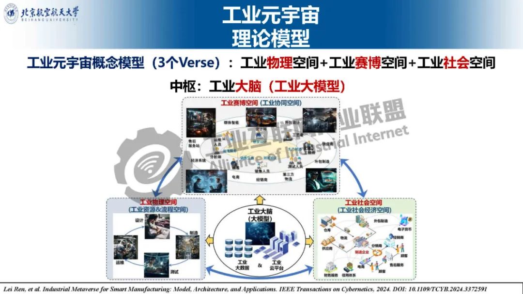 任磊介紹,工業(yè)互聯(lián)網(wǎng)在人工智能2.0時代,融合催生了5G+邊緣智能、云制造+云邊協(xié)同智能、工業(yè)大數(shù)據(jù)+數(shù)據(jù)智能、工業(yè)仿真+孿生智能等一系列新技術(shù)、新應(yīng)用、新標(biāo)準(zhǔn)。當(dāng)前以大模型等新技術(shù)為代表的人工智能3.0時代,工業(yè)具身智能模型(ABC Model)將引領(lǐng)未來工業(yè)互聯(lián)網(wǎng)多層級的工業(yè)智能體構(gòu)建與應(yīng)用;工業(yè)元宇宙將形成工業(yè)物理空間-賽博空間-社會空間融合的三元世界;工業(yè)大模型將通過自底向上的原始創(chuàng)新,打造未來工業(yè)互聯(lián)網(wǎng)的智能化新基座。同時,基于開放式數(shù)字課程與AI大模型的新型教學(xué)與實驗平臺,將為工業(yè)互聯(lián)網(wǎng)新型人才培養(yǎng)提供強有力的支撐。