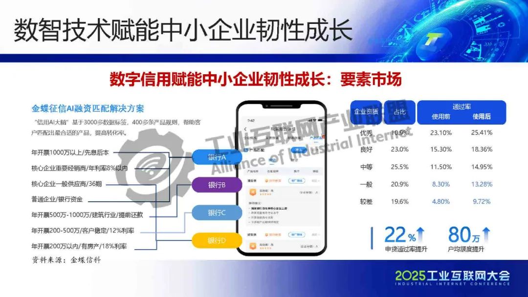 鄔愛其介紹,數智技術正成為中小企業韌性成長的關鍵驅動力。數智技術通過提升協同效率、優化供應鏈和構建創新生態,顯著增強企業競爭優勢,但其效能取決于組織的互補性投入和市場承載空間。我國中小企業數智化轉型進程加速,政策支持力度加大,2024年多項政策文件出臺推動試點和評測,但整體仍處早期階段。數智技術通過構建數字信用體系賦能韌性成長,例如金蝶信科的AI融資匹配方案,利用產業鏈數據圖譜穿透上下游風險,助力企業精準識別客戶與供應商。專精特新企業成為轉型中堅,集群化、“鏈式”轉型模式逐步成型。未來需進一步解決技術嵌入能力與市場變現的協同問題。
