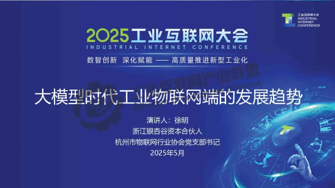 5月21日,在2025工業(yè)互聯(lián)網(wǎng)大會“工業(yè)互聯(lián)網(wǎng)產(chǎn)融合作專題活動”上,環(huán)亞數(shù)字經(jīng)濟研究院院長、長三角城市經(jīng)濟協(xié)調(diào)會物聯(lián)網(wǎng)專委會秘書長、銀杏谷資本合伙人 發(fā)表了《大模型時代下物聯(lián)網(wǎng)端的發(fā)展趨勢》的主題演講。