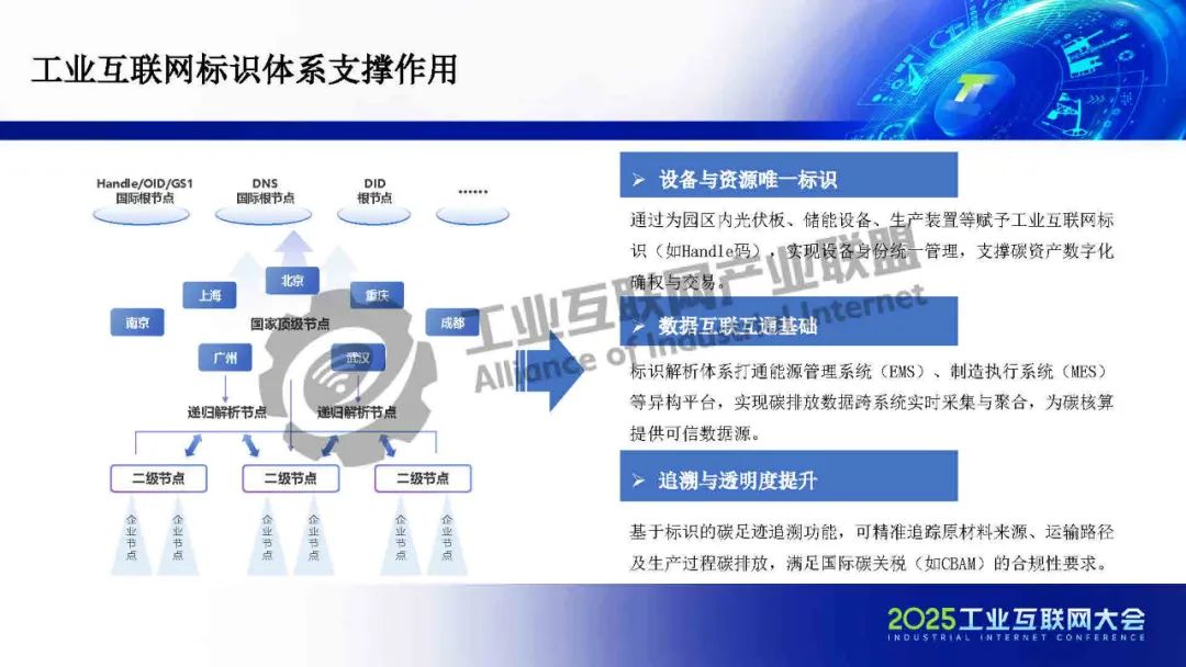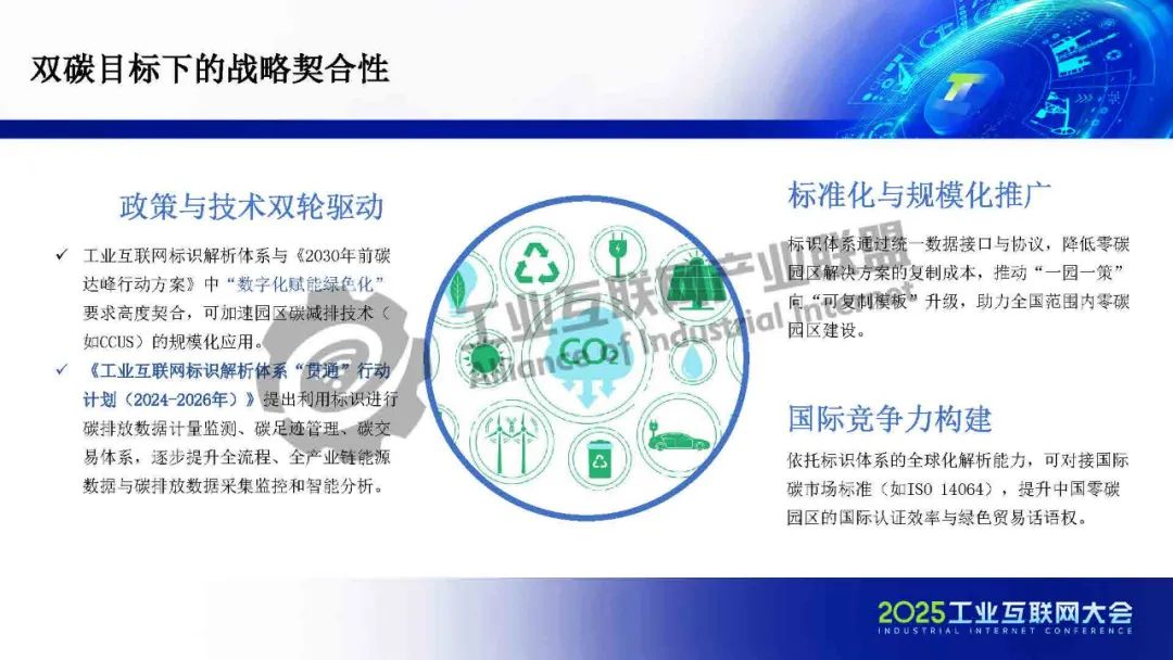 目前,標(biāo)識(shí)解析體系已建成近400個(gè)二級(jí)節(jié)點(diǎn),服務(wù)企業(yè)超過(guò)50萬(wàn)家,具備了大規(guī)模應(yīng)用的堅(jiān)實(shí)基礎(chǔ),隨著《工業(yè)互聯(lián)網(wǎng)標(biāo)識(shí)解析體系"貫通"行動(dòng)計(jì)劃(2024-2026年)》深入實(shí)施,標(biāo)識(shí)體系已成為工業(yè)園區(qū)實(shí)現(xiàn)"雙碳"目標(biāo)與數(shù)字化轉(zhuǎn)型的關(guān)鍵載體。