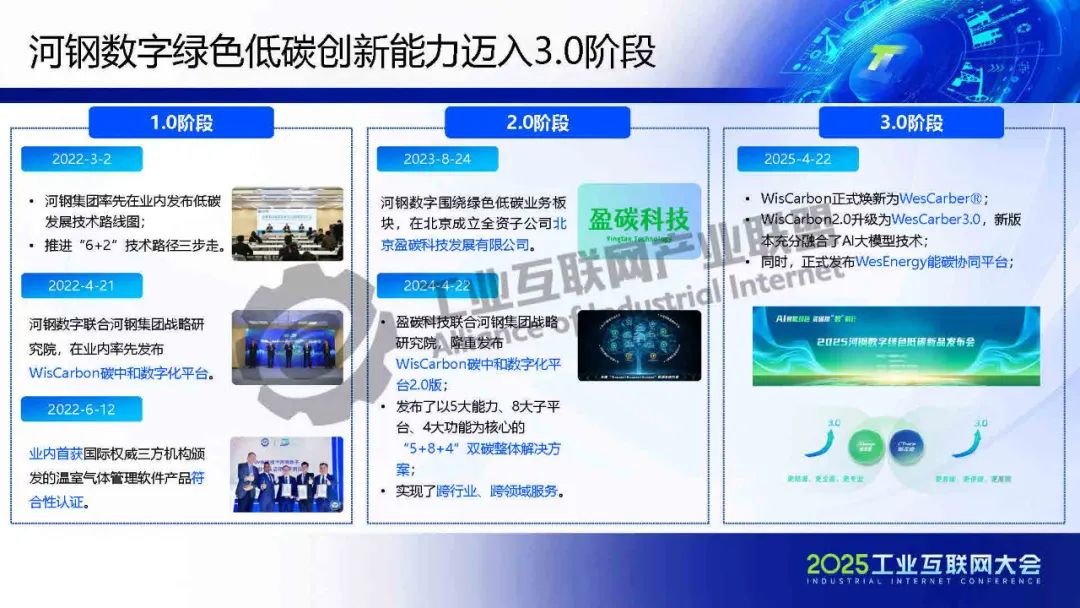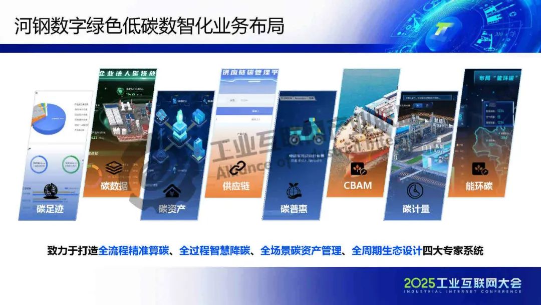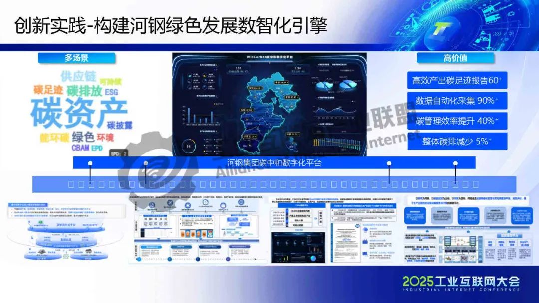 5月22日,在2025工業(yè)互聯(lián)網(wǎng)大會“工業(yè)數(shù)字化綠色化協(xié)同轉(zhuǎn)型專題活動”上,工業(yè)互聯(lián)網(wǎng)產(chǎn)業(yè)聯(lián)盟碳達(dá)峰碳中和工作組副主席、河鋼數(shù)字綠色低碳事業(yè)部常務(wù)副總經(jīng)理、北京盈碳科技發(fā)展有限公司副總經(jīng)理苗海濤發(fā)表了《數(shù)智平臺賦能企業(yè)綠色低碳高質(zhì)量發(fā)展》的主題演講。