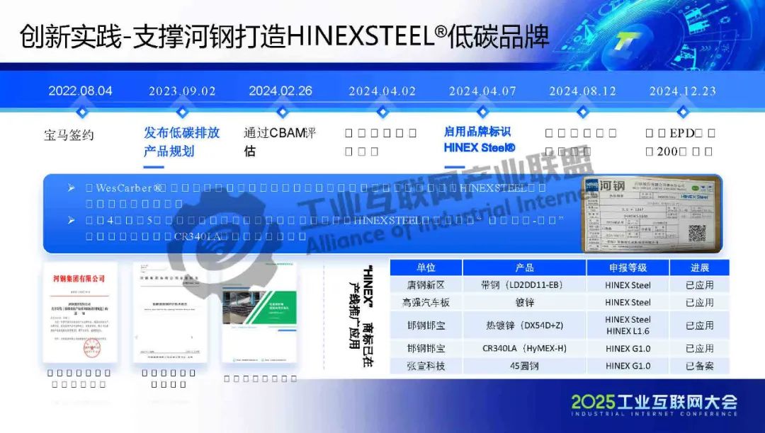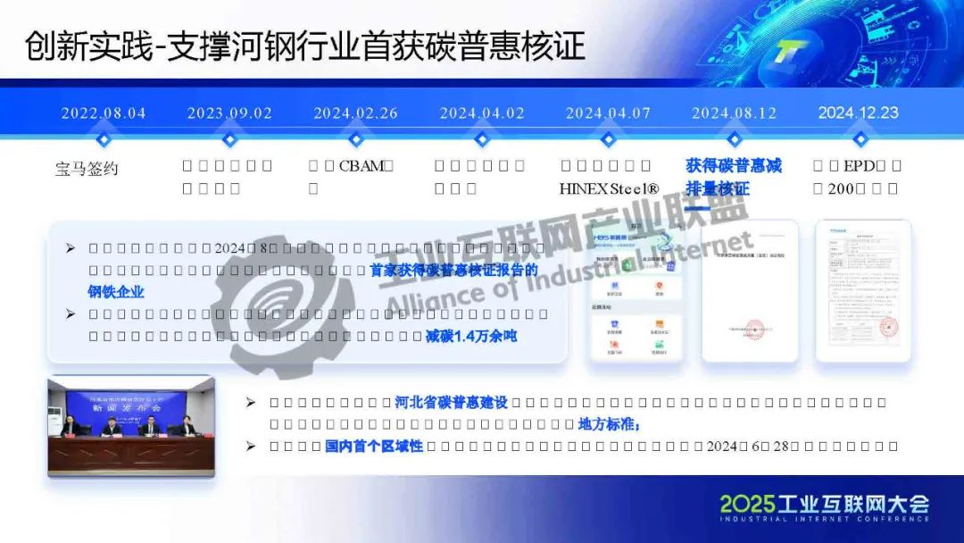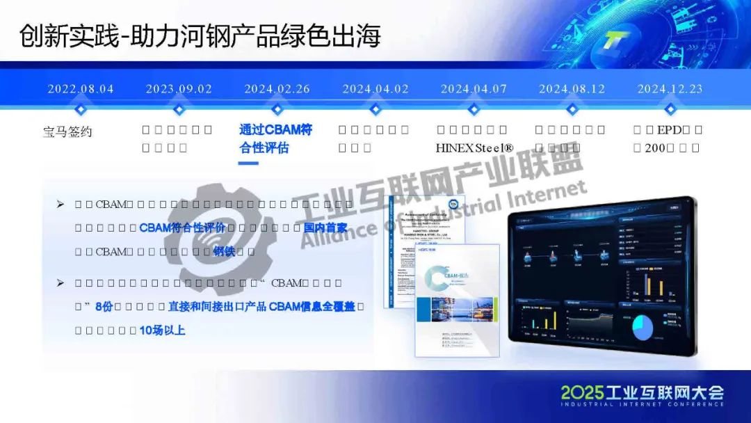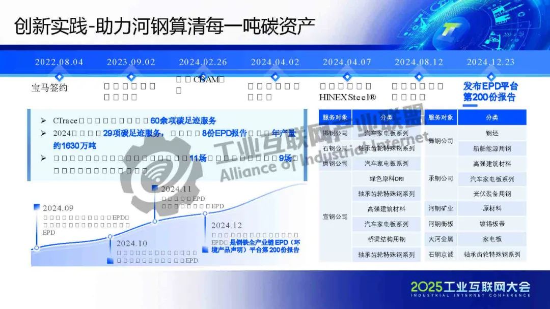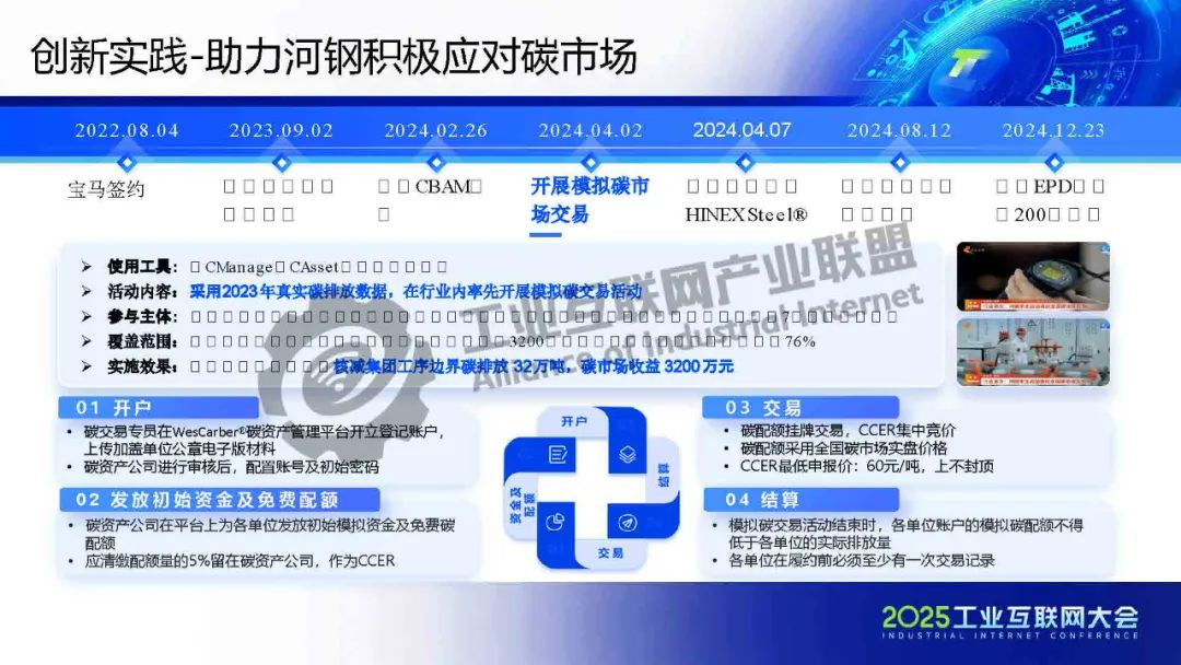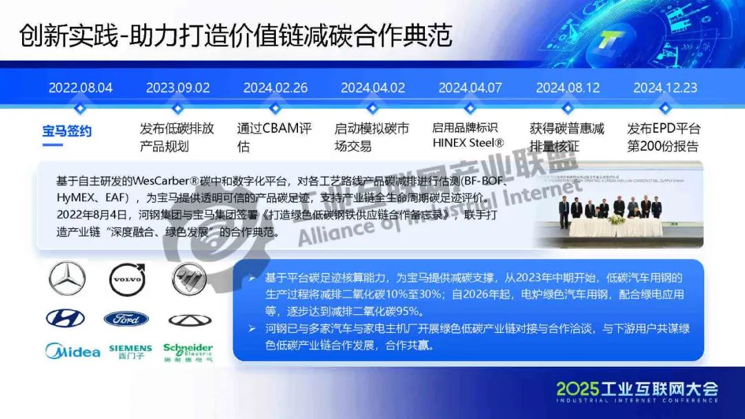 苗海濤介紹,河鋼數(shù)字作為河鋼集團(tuán)數(shù)字化轉(zhuǎn)型的核心力量,聚焦綠色低碳數(shù)智化創(chuàng)新,通過自主研發(fā)的WesCarber碳中和數(shù)字化平臺及系列解決方案,助力集團(tuán)實現(xiàn)全流程碳管理。平臺涵蓋碳足跡核算、碳資產(chǎn)管理、綠色供應(yīng)鏈、CBAM應(yīng)對等功能,并融合AI技術(shù)提升智能化水平。實踐案例包括:為寶馬提供透明碳足跡數(shù)據(jù)支撐合作簽約,助力集團(tuán)獲得國內(nèi)首個CBAM符合性評估報告,推動低碳產(chǎn)品認(rèn)證和碳普惠核證,完成60余項碳足跡服務(wù)及EPD報告發(fā)布。河鋼數(shù)字通過數(shù)據(jù)貫通與標(biāo)準(zhǔn)建設(shè),實現(xiàn)碳排放減少5%、管理效率提升40%,為鋼鐵行業(yè)綠色轉(zhuǎn)型提供示范。