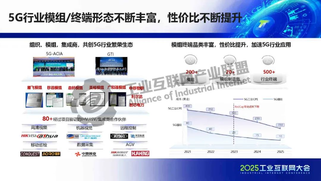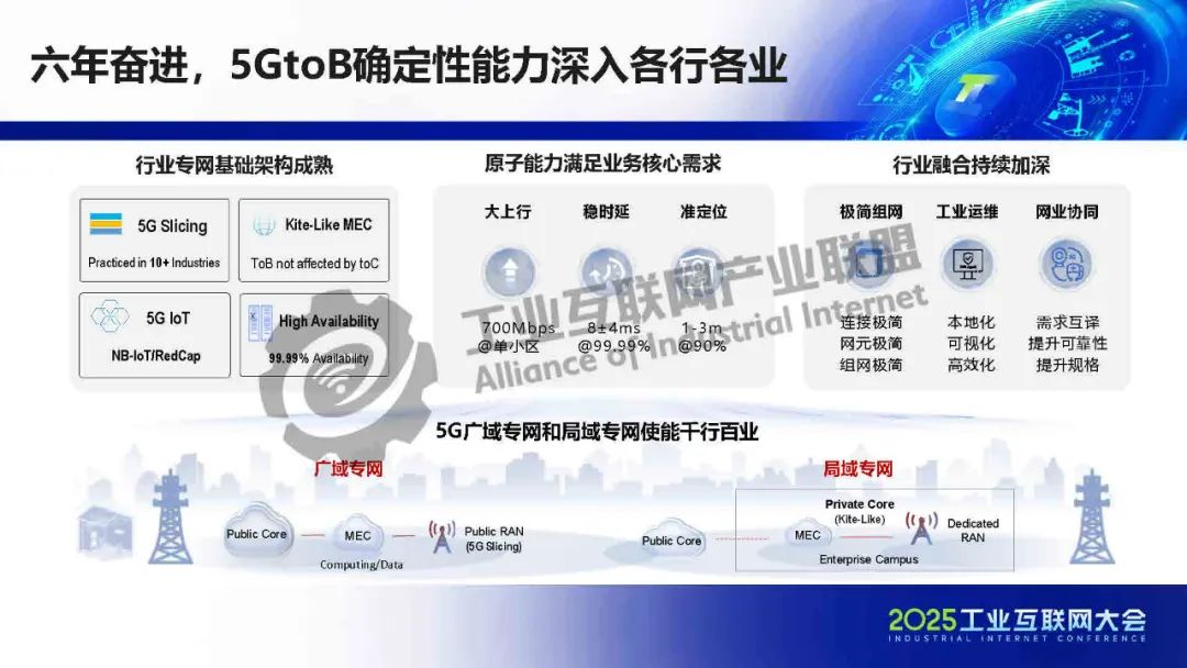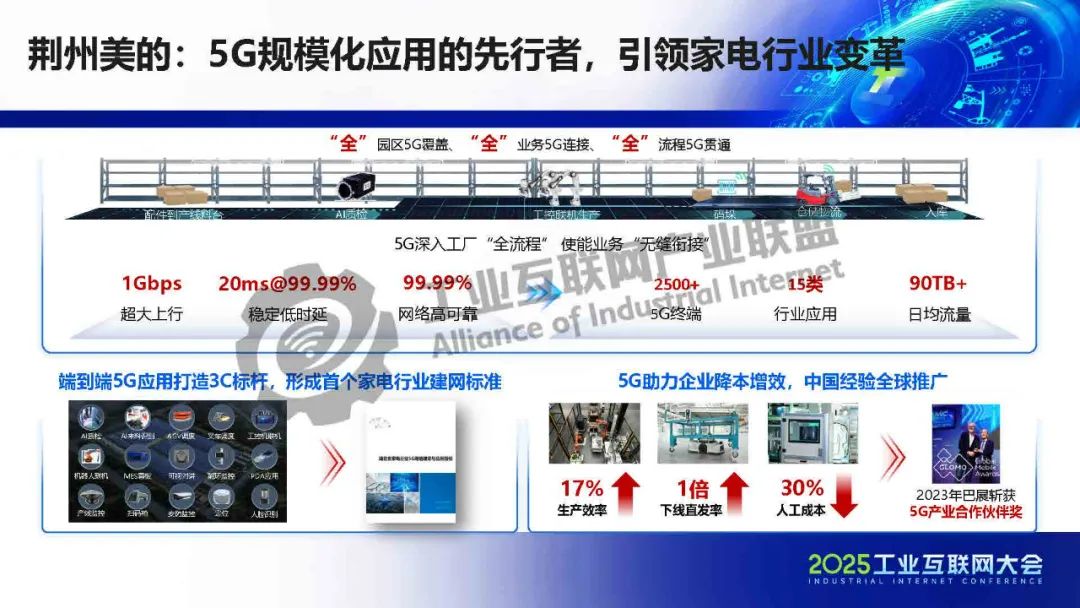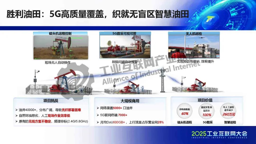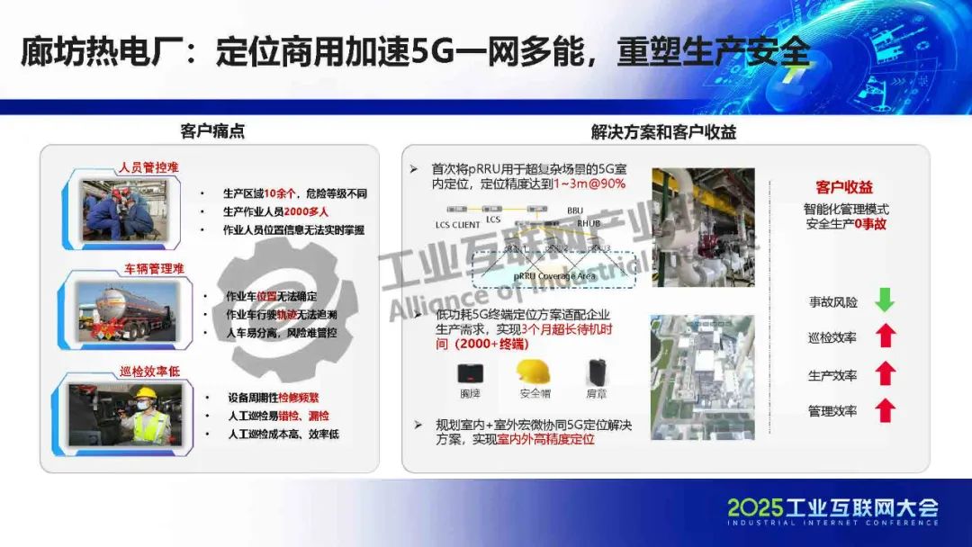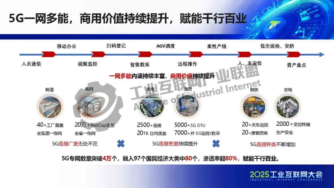 鄒向毅介紹,5G技術(shù)已具備確定性能力,如大上行(700Mbps)、穩(wěn)時延(8±4ms)、準(zhǔn)定位(1-3m),并通過廣域/局域?qū)>W(wǎng)架構(gòu)服務(wù)千行百業(yè)。5G行業(yè)模組和終端形態(tài)豐富,成本持續(xù)下降,加速了工業(yè)應(yīng)用落地。政策支持與行業(yè)標(biāo)準(zhǔn)(如化工、礦山領(lǐng)域)進(jìn)一步推動5G規(guī)模化應(yīng)用,目標(biāo)覆蓋7萬企業(yè)、1億終端連接。典型案例包括:平煤集團(tuán)利用5G實現(xiàn)遠(yuǎn)程采礦,效率提升50%;荊州美的通過全流程5G貫通,降低人工成本30%;勝利油田借助5G無盲區(qū)覆蓋,年省巡檢成本260萬元;萬華化學(xué)以5G專網(wǎng)提升生產(chǎn)安全80%。此外,5G-A新方案(毫米波、Passive IoT、通感一體)將進(jìn)一步釋放潛力,如毫米波實現(xiàn)亞米級定位,Passive IoT免電池覆蓋200米,通感一體助力低空安防。華為5G已賦能制造、電網(wǎng)等80個行業(yè)大類,專網(wǎng)超4萬個,持續(xù)推動工業(yè)數(shù)字化提質(zhì)增效。