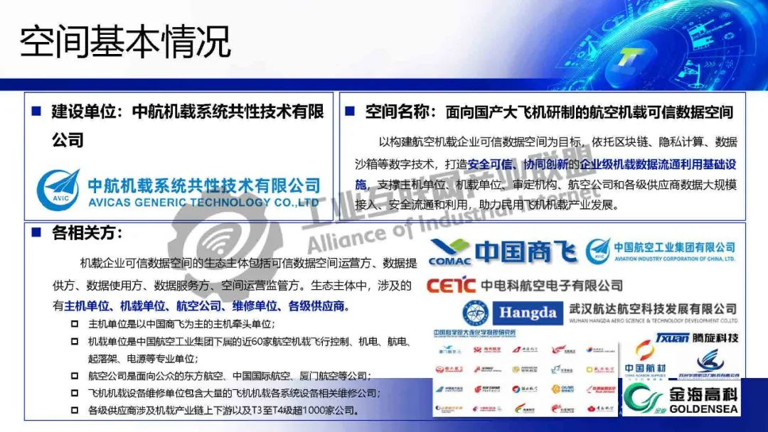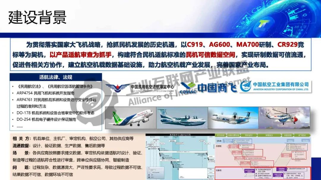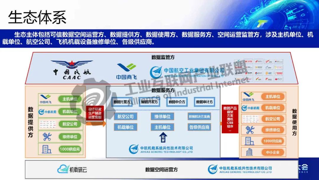 周振興介紹,為貫徹落實(shí)國(guó)家大飛機(jī)戰(zhàn)略,搶抓民機(jī)發(fā)展的歷史機(jī)遇,以C919、AG600、MA700研制、CR929競(jìng)標(biāo)等為契機(jī),以產(chǎn)品適航審查為抓手,構(gòu)建符合民機(jī)適航標(biāo)準(zhǔn)的民機(jī)可信數(shù)據(jù)空間,實(shí)現(xiàn)研制數(shù)據(jù)可信流通,促進(jìn)各相關(guān)方協(xié)作,建立航空機(jī)載數(shù)據(jù)基礎(chǔ)設(shè)施,助力航空機(jī)載產(chǎn)業(yè)發(fā)展,完善國(guó)家產(chǎn)業(yè)布局。航空機(jī)載可信數(shù)據(jù)空生態(tài)主體包括可信數(shù)據(jù)空間運(yùn)營(yíng)方、數(shù)據(jù)提供方、數(shù)據(jù)使用方、數(shù)據(jù)服務(wù)方、空間運(yùn)營(yíng)監(jiān)管方,涉及主機(jī)單位、機(jī)載單位、航空公司、飛機(jī)機(jī)載設(shè)備維修單位、各級(jí)供應(yīng)商。