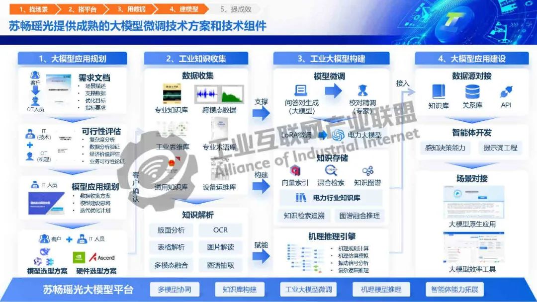 毛旭初介紹,工業大模型基于海量工業多模態數據訓練,具備工業知識推理、生產風險識別、工藝仿真優化等決策能力。瑤光工業大模型在小模型的基礎上加持大模型的生成、推理、調度能力,實現故障綜合判斷,三大智能體協同,實現從觀察、分析、決策、行動到驗證的閉環。