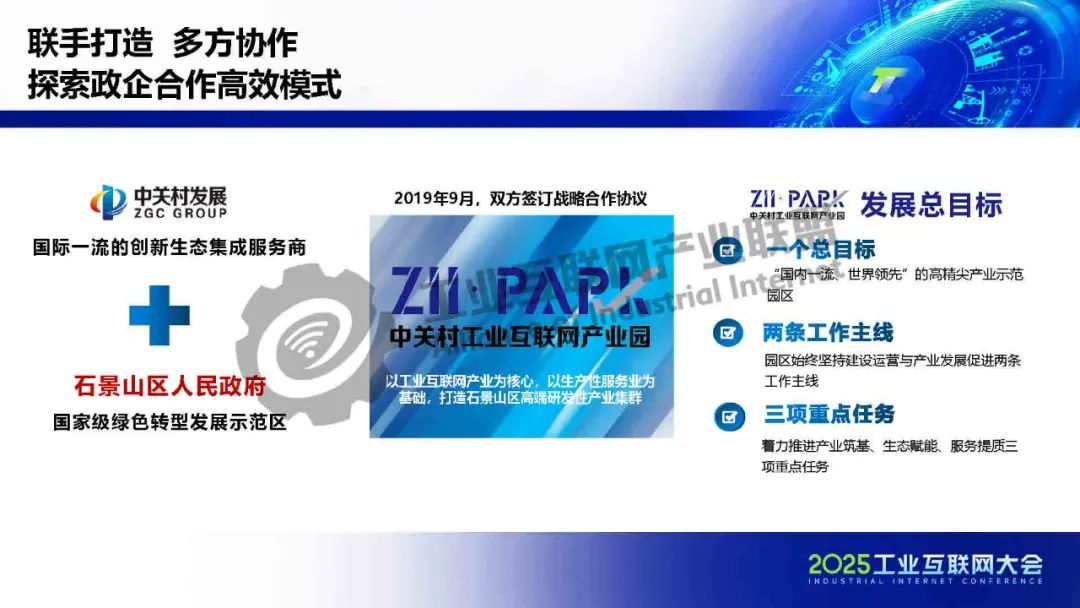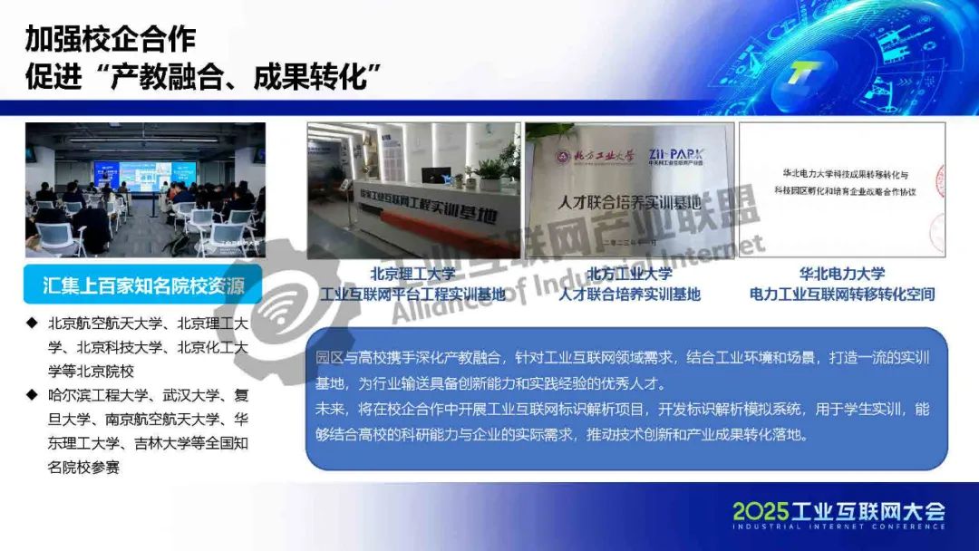 張文靜介紹,中關(guān)村工業(yè)互聯(lián)網(wǎng)產(chǎn)業(yè)園旨在打造“國內(nèi)一流、世界領(lǐng)先”的高精尖產(chǎn)業(yè)示范園區(qū),聚焦工業(yè)互聯(lián)網(wǎng)七大細(xì)分領(lǐng)域,提供八大產(chǎn)業(yè)服務(wù)空間和六大產(chǎn)業(yè)服務(wù)體系,包括基金支持、實驗室合作及產(chǎn)業(yè)大賽,推動技術(shù)創(chuàng)新與供需對接。通過校企合作,園區(qū)培養(yǎng)實踐型人才,促進(jìn)產(chǎn)教融合與成果轉(zhuǎn)化,成為輻射京津冀、服務(wù)全國的工業(yè)互聯(lián)網(wǎng)創(chuàng)新策源地。