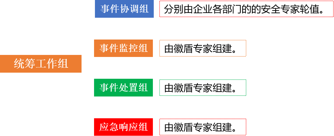 為保證重保行動順利開展,統籌工作組下設事件協調組、事件監控組、事件處置組和應急響應組分別開展工作。