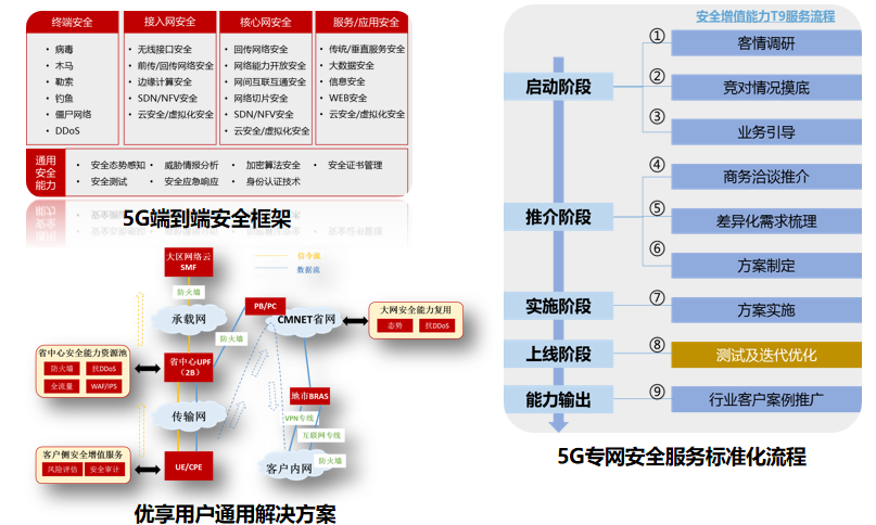 面向5G端到端,提升安全風險告警、IP溯源、快速處置能力。面向5G垂直行業客戶,積極推進安全服務產品化,形成服務標準化流程、輸出安全服務能力清單,提升集約化安全運營中心對新業務的保障能力,目前已實現多個方案落地試點。