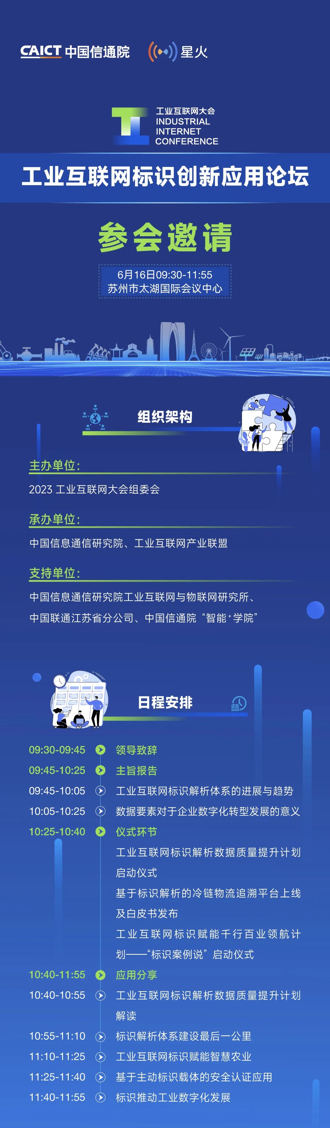 為貫徹黨的二十大精神,加快落實“十四五”規劃綱要關于“穩妥發展工業互聯網”的相關要求,深入實施《工業互聯網創新發展行動計劃(2021-2023年)》,大力推進工業互聯網規模化應用,促進產業數字化轉型,為加速我國新型工業化發展提供關鍵支撐, 由工業和信息化部、江蘇省人民政府主辦,中國信息通信研究院、江蘇省工業和信息化廳、江蘇省通信管理局、蘇州市人民政府、工業互聯網產業聯盟、中國通信學會、中國互聯網協會聯合承辦的【2023工業互聯網大會】,將于2023年6月14-16日在江蘇省蘇州市舉辦,本次大會由開幕式、高峰對話、高端論壇、學術大會、成果報告會、成果展示、現場調研、企業路演等40余場豐富的產業活動組成。