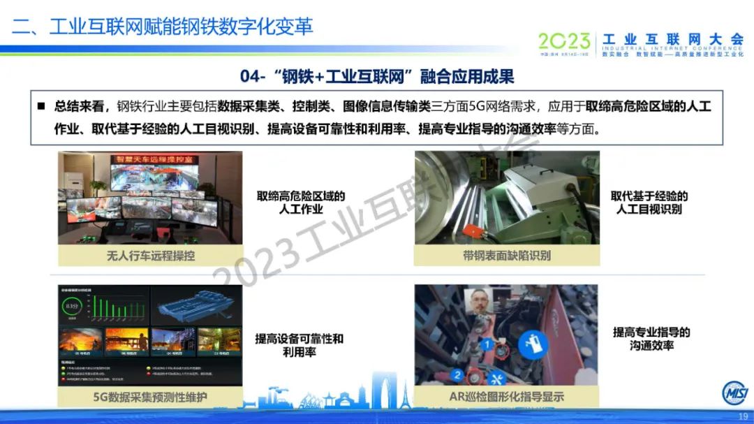 “鋼鐵行業主要包括數據采集類、控制類、圖像信息傳輸類三方面5G網絡需求,應用于取締高危險區域的人工作業、取代基于經驗的人工目視識別、提高設備可靠性和利用率、提高專業指導的溝通效率等方面。”