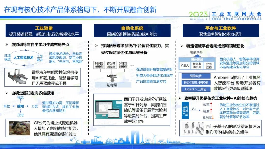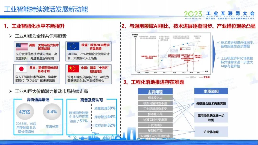 “當(dāng)前工業(yè)大模型未來應(yīng)用發(fā)展分為兩大模式、四個(gè)階段,但也面臨數(shù)據(jù)、產(chǎn)業(yè)等方面挑戰(zhàn)。他認(rèn)為:工業(yè)大模型是在現(xiàn)有工業(yè)智能可解問題的范疇之內(nèi)提升效率或解決一些更深層次的問題,在短期內(nèi)應(yīng)該不會(huì)顛覆現(xiàn)有的產(chǎn)業(yè)支撐體系,更多的還是以被疊加的特點(diǎn)融入現(xiàn)有的工業(yè)產(chǎn)品?!?img src="/uploads/1/20230801/dfa7de918ae8aad37948c68b2cd84caa.jpg"/>《工業(yè)智能白皮書》從體系內(nèi)涵、技術(shù)、應(yīng)用和產(chǎn)業(yè)等維度進(jìn)行了闡述。體系方面,對目前工業(yè)智能面臨的問題進(jìn)行了總結(jié),提出了涵蓋三個(gè)視角的工業(yè)智能發(fā)展體系。技術(shù)方面,梳理了工業(yè)智能技術(shù)發(fā)展現(xiàn)狀,圍繞核心賦能技術(shù)創(chuàng)新與工程化突破兩個(gè)技術(shù)發(fā)展路徑進(jìn)行深入分析。產(chǎn)業(yè)方面,梳理工業(yè)智能產(chǎn)業(yè)現(xiàn)狀與發(fā)展趨勢,對支撐工業(yè)賦能的核心技術(shù)產(chǎn)品進(jìn)行分析。應(yīng)用方面,總結(jié)工業(yè)智能應(yīng)用發(fā)展總體歷程,從應(yīng)用場景、國內(nèi)外應(yīng)用與行業(yè)應(yīng)用三個(gè)角度開展細(xì)化分析。