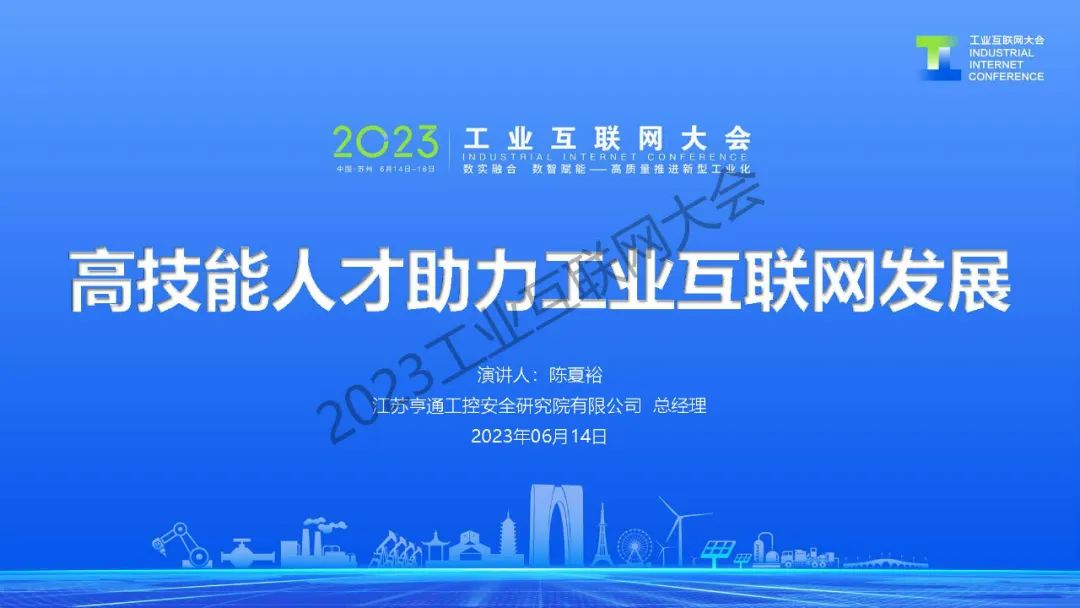 6月14日,在2023工業(yè)互聯(lián)網(wǎng)大會“工業(yè)互聯(lián)網(wǎng)人才發(fā)展論壇”上,江蘇亨通工控安全研究院有限公司總經(jīng)理陳夏裕發(fā)表了《高技能人才助力工業(yè)互聯(lián)網(wǎng)發(fā)展》的主題演講。