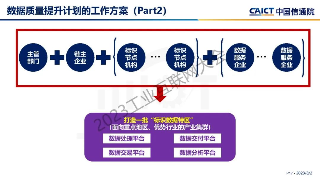 “工業(yè)互聯(lián)網(wǎng)標(biāo)識(shí)解析數(shù)據(jù)質(zhì)量提升計(jì)劃將通過(guò)實(shí)施關(guān)鍵標(biāo)準(zhǔn)研制、服務(wù)手冊(cè)編寫(xiě)、數(shù)據(jù)產(chǎn)品開(kāi)發(fā)、數(shù)據(jù)特區(qū)建設(shè)等重點(diǎn)任務(wù),推動(dòng)形成數(shù)據(jù)融通、服務(wù)暢通、應(yīng)用貫通的標(biāo)識(shí)數(shù)據(jù)流通生態(tài)。”