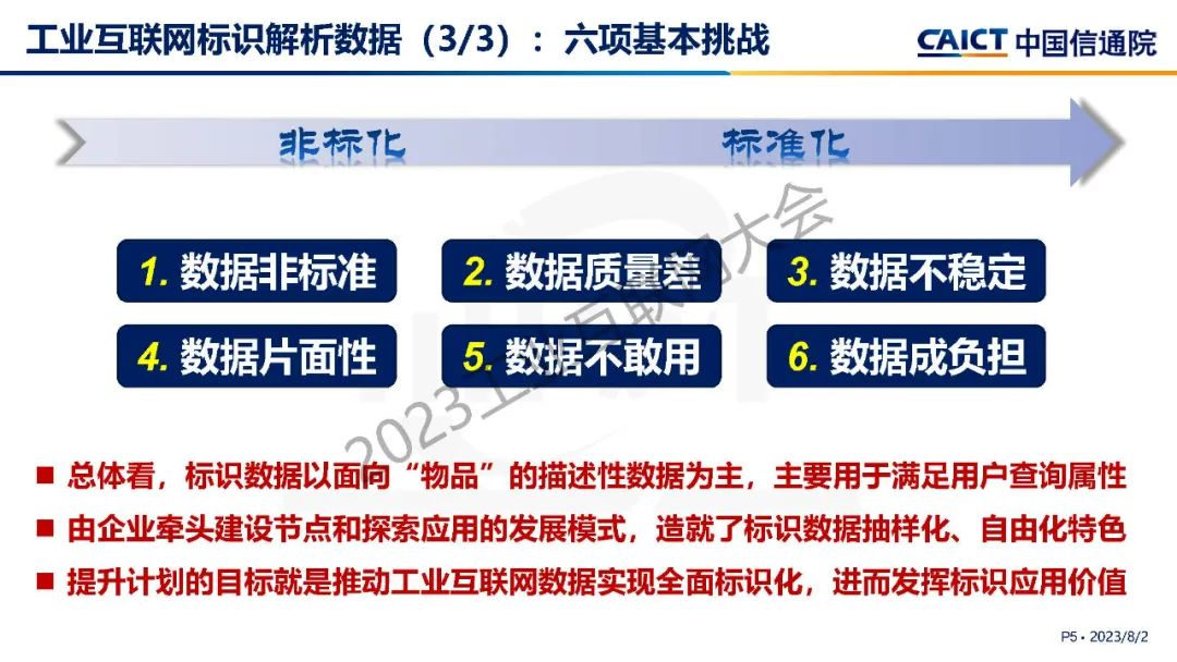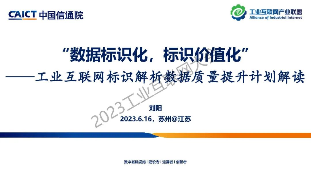 6月14日,在2023工業(yè)互聯(lián)網(wǎng)大會(huì)“工業(yè)互聯(lián)網(wǎng)標(biāo)識(shí)創(chuàng)新應(yīng)用論壇”上,工業(yè)互聯(lián)網(wǎng)產(chǎn)業(yè)聯(lián)盟標(biāo)識(shí)工作組主席劉陽(yáng)發(fā)表了《工業(yè)互聯(lián)網(wǎng)標(biāo)識(shí)解析數(shù)據(jù)質(zhì)量提升計(jì)劃解讀》的主題演講。