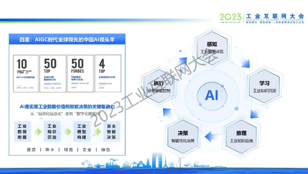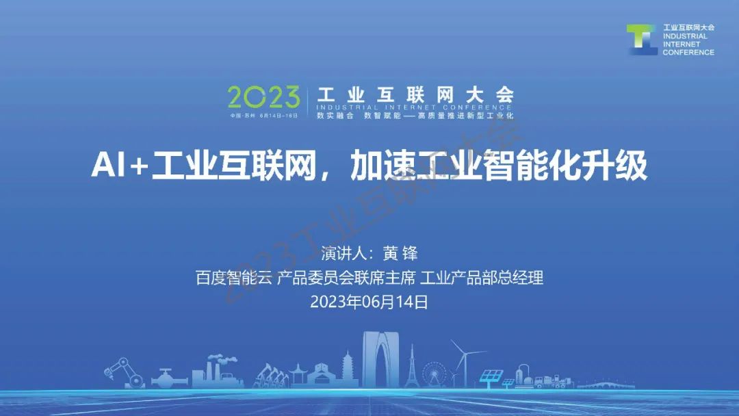 6月14日,在2023工業(yè)互聯(lián)網(wǎng)大會“融合新模式、融入新工業(yè)論壇暨中國互聯(lián)網(wǎng)協(xié)會工業(yè)互聯(lián)網(wǎng)工作委員會第一屆委員會第二次全體成員會議”上,百度智能云產(chǎn)品委員會聯(lián)席主席、工業(yè)能源產(chǎn)品研發(fā)總經(jīng)理黃鋒發(fā)表了《AI+工業(yè)互聯(lián)網(wǎng),加速工業(yè)智能化升級》的演講。