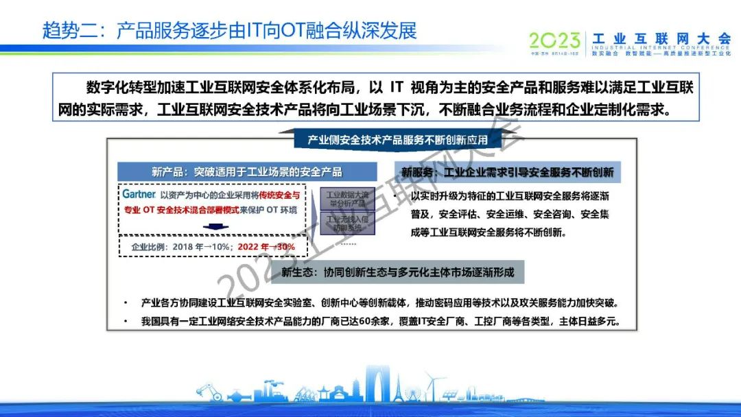 “數字化轉型加速工業互聯網安全體系化布局,以 IT 視角為主的安全產品和服務難以滿足工業互聯網的實際需求,工業互聯網安全技術產品將向工業場景下沉,不斷融合業務流程和企業定制化需求。”