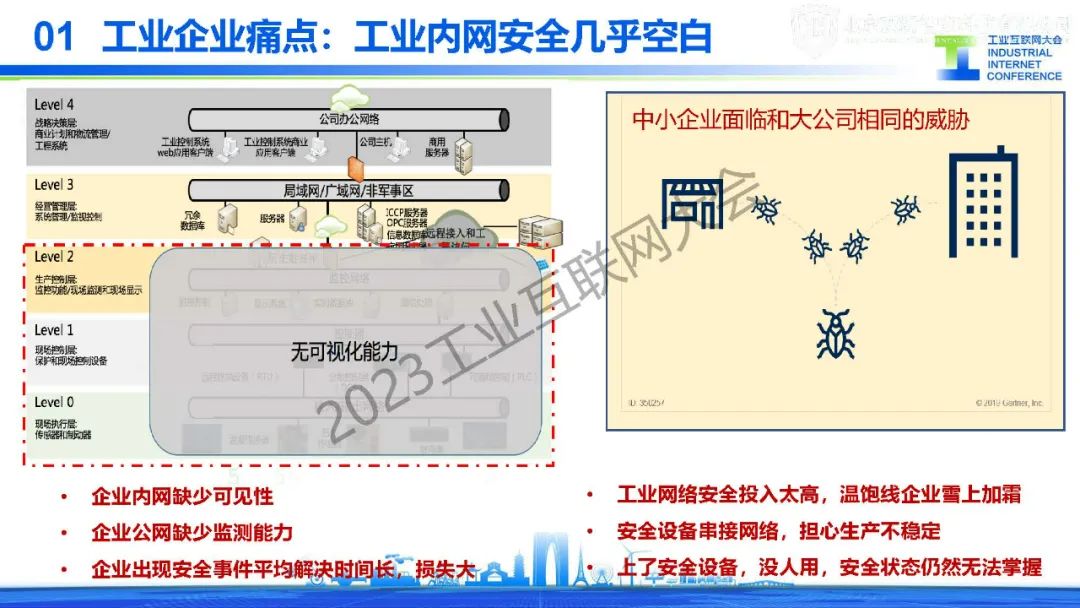 陶耀東表示,工業(yè)內(nèi)網(wǎng)安全幾乎空白。工業(yè)網(wǎng)絡(luò)安全投入太高,溫飽線企業(yè)雪上加霜,安全設(shè)備串接網(wǎng)絡(luò),擔(dān)心生產(chǎn)不穩(wěn)定,上了安全設(shè)備,沒(méi)人用,安全狀態(tài)仍然無(wú)法掌握。要解決以上問(wèn)題,需要從國(guó)家政策、標(biāo)準(zhǔn)指南、體系架構(gòu)、經(jīng)典模型、安全風(fēng)險(xiǎn)等五個(gè)方面進(jìn)行全面性設(shè)計(jì)。