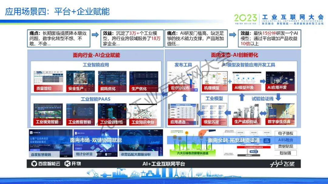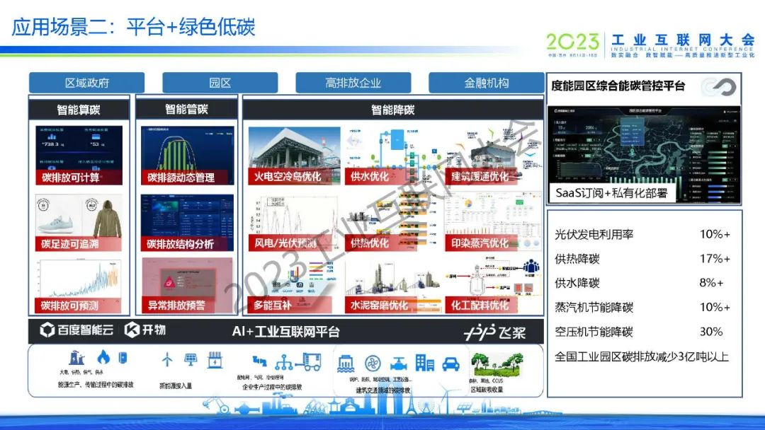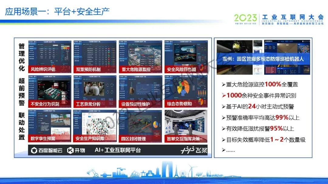 吳學(xué)義指出,百度通過(guò)AI+工業(yè)互聯(lián)網(wǎng)助力園區(qū)高質(zhì)量發(fā)展,達(dá)到高產(chǎn)高效,綠色低碳,安全可控,營(yíng)商便捷和活力創(chuàng)新等效果。同時(shí),吳學(xué)義也分享了平臺(tái)+安全生產(chǎn)、平臺(tái)+綠色低碳、平臺(tái)+產(chǎn)業(yè)大腦、平臺(tái)+企業(yè)賦能等多個(gè)應(yīng)用場(chǎng)景。