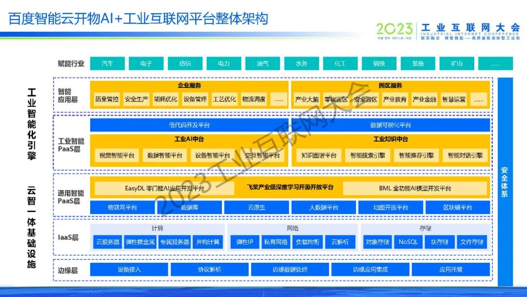 6月15日,在2023工業(yè)互聯(lián)網(wǎng)大會(huì)“工業(yè)互聯(lián)網(wǎng)平臺(tái)創(chuàng)新發(fā)展論壇”上,百度智能云智能制造解決方案總經(jīng)理吳學(xué)義發(fā)表了《百度智能云開(kāi)物助力園區(qū)高質(zhì)量發(fā)展》的演講。