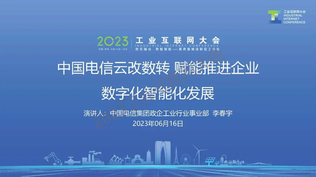 6月16日,在2023工業(yè)互聯(lián)網(wǎng)大會(huì)“‘5G+工業(yè)互聯(lián)網(wǎng)’融合發(fā)展高端論壇”上,中國電信集團(tuán)政企信息服務(wù)事業(yè)群工業(yè)行業(yè)事業(yè)部副總裁李春宇發(fā)表了《中國電信云改數(shù)轉(zhuǎn) 賦能推進(jìn)企業(yè)數(shù)字化智能化發(fā)展》的主題演講。