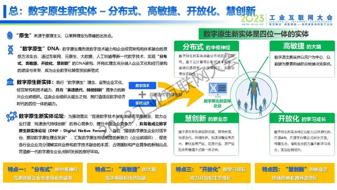 “企業數字化是轉型和賦能交替發展的旅程,不同行業根據數字原生程度不同,處于不同階段和角色定位,但是轉型方向和終極目標一致。企業數字化轉型的終點是邁向數字原生。”