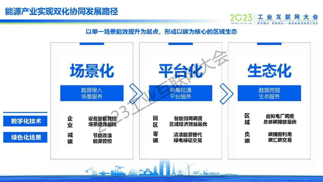 “雙化協(xié)同發(fā)展應(yīng)該是從企業(yè)自身場(chǎng)景落地場(chǎng)景看,隨著市場(chǎng)機(jī)制的逐漸完善包括技術(shù)進(jìn)步,在大的區(qū)域內(nèi)實(shí)現(xiàn)碳的資源優(yōu)化配置,最終實(shí)現(xiàn)雙化協(xié)同的長(zhǎng)期愿景。隨著資源配置的區(qū)域逐漸擴(kuò)大,區(qū)域內(nèi)場(chǎng)景逐漸豐富,平臺(tái)匯聚的數(shù)據(jù)量越來(lái)越多,對(duì)云計(jì)算、大數(shù)據(jù)、人工智能等數(shù)字化技術(shù)的有更高需求來(lái)實(shí)現(xiàn)場(chǎng)景綠色化。”