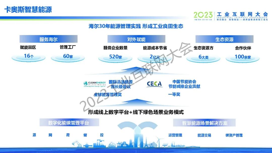 6月16日,在2023工業(yè)互聯(lián)網(wǎng)大會(huì)“數(shù)字助力碳達(dá)峰碳中和高端論壇”上,海爾卡奧斯智慧能源首席產(chǎn)品官楊子江發(fā)表了《數(shù)字化技術(shù)推動(dòng)綠色化轉(zhuǎn)型促進(jìn)產(chǎn)業(yè)高質(zhì)量發(fā)展》的主題演講。
