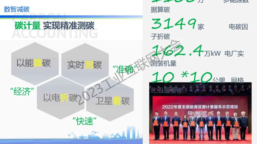 “碳計量,國網推出以能算碳、實時測碳、以電折碳、衛星看碳。其中以能算碳有一套完整的方法論;實時測碳是直接排放的煙囪上安裝了二氧化碳傳感器;以電折碳是通過電力快速折算出二氧化碳的排放;衛星看碳采用歐盟哨兵5P的開源數據,做了整個中國范圍的10×10公里的網格看碳?!?/p>