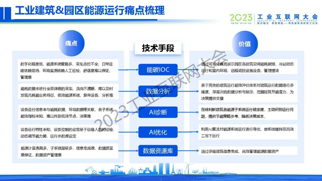 朱暉指出,工業(yè)作為能源消耗與碳排放的重點行業(yè),在雙碳工作中一直被高度關(guān)注與高優(yōu)管理。它就像一把雙刃劍,一方面問題影響嚴重,另一方面一旦能夠有效解決,帶來的作用也是巨大且顯著的。針對工業(yè)建筑&園區(qū)能源運行痛點,騰訊數(shù)字孿生重點解決決策優(yōu)化和決策可視問題,具備全真映射、實時計算、數(shù)據(jù)驅(qū)動、泛在連接的四大特點。