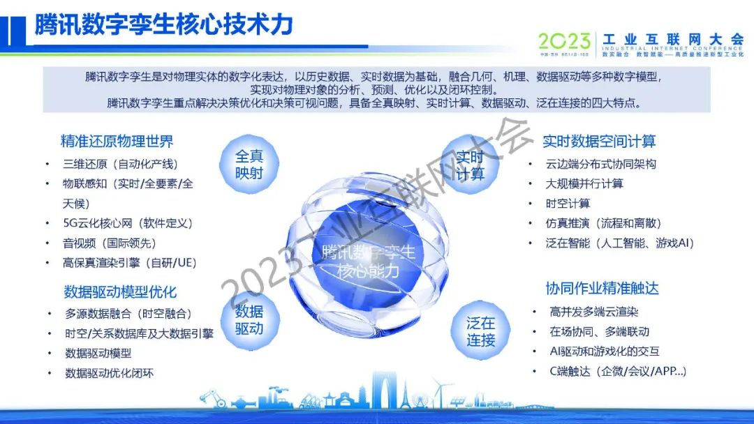 “騰訊數(shù)字孿生是對物理實體的數(shù)字化表達,以歷史數(shù)據(jù)、實時數(shù)據(jù)為基礎,融合幾何、機理、數(shù)據(jù)驅(qū)動等多種數(shù)字模型,實現(xiàn)對物理對象的分析、預測、優(yōu)化以及閉環(huán)控制。”