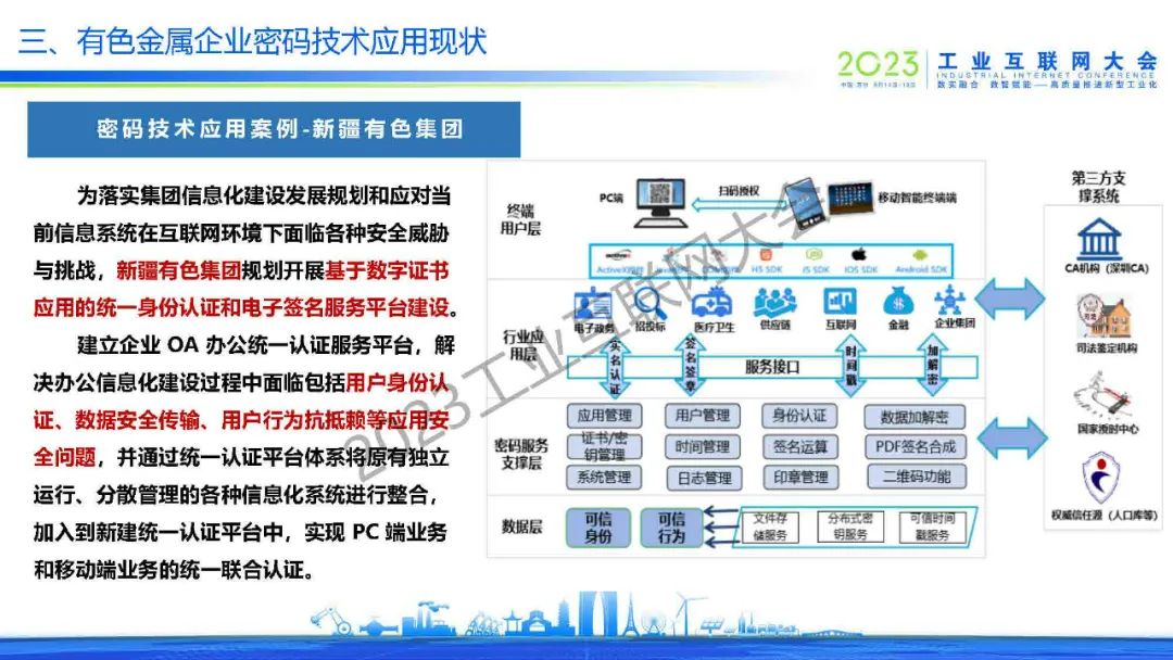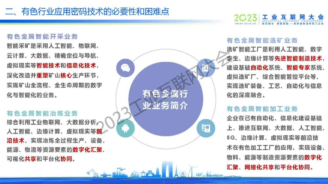 6月14日,在2023工業互聯網大會“工業互聯網密碼創新應用論壇”上,礦冶科技集團有限公司北礦智能科研部經理馬朝陽發表了《有色金屬行業密碼技術應用現狀與需求分析》的主題演講。