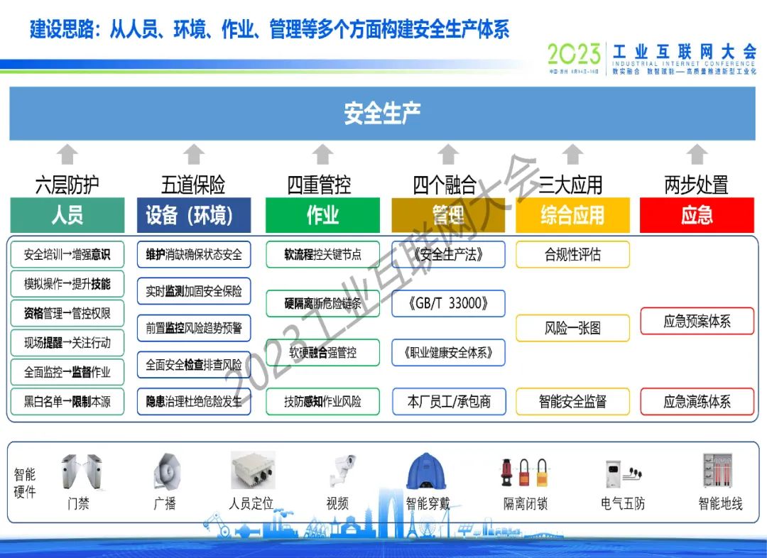 許勉表示,化工行業數智化不是一蹴而就的事情,而是一個不斷完善的過程。底層基礎決定上層建筑,走好第一步非常重要。從“互聯”和“安全”為出發點,采用“用平臺規范、用智能管控、用數據指導、用工具提效”的建設思路,圍繞人員、設備(環境)、作業、管理、綜合應用、應急六個方面,構建“實用、管用、好用”的云智一體化平臺。在“六層防護、五道保險、四重管控、四個融合、三大應用、兩步處置”合力加持下,構筑全流程數字安全堅實屏障,為化工園區、企業建立最具價值的智能安全管控平臺。